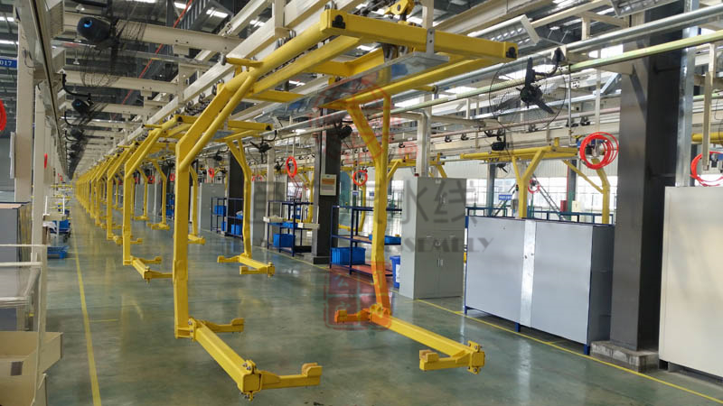 電動汽車流水線(裝配線)--電動轎車組裝流水線設(shè)備,通常為輸送設(shè)備與專機組合形式,懸掛輸送線,單板鏈輸送線,到雙板鏈輸送線。設(shè)備可以布置在地面上,也可以做成與地面齊平。浙江溫嶺通廣流水線有限公司從事工業(yè)流水線的開發(fā)與制造30年,提供方案規(guī)劃,設(shè)備制造安裝以及維護工作,也可根據(jù)需要安排員工出國安裝。